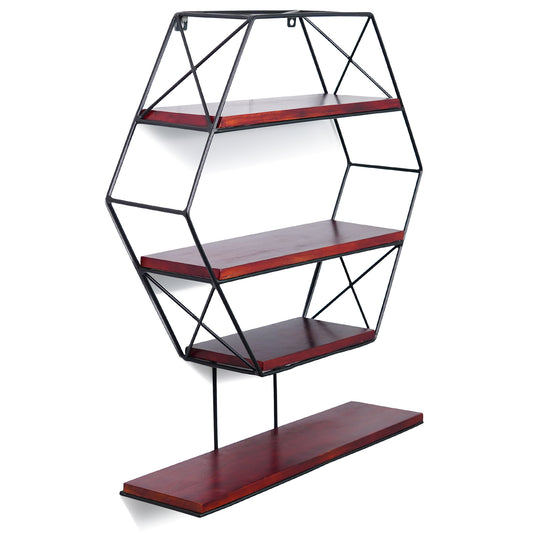Hexagon Rustic Wood Bookshelf for Wall or Home Office