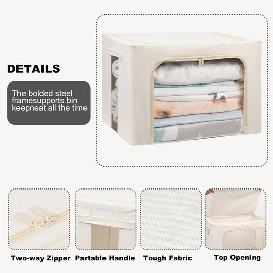 Foldable Storage Bins with zipper - 100L extra large - Linen mate for Bedding, Clothes, Blankets, throw rugs - Ideal for Linen Closet closet organizer