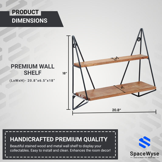 2 tier modern wall shelf | 20"x 7"x 15" | Black Metal | 1 Piece